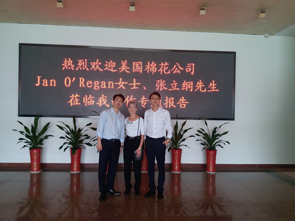 2018年4月20日,美國(guó)棉花公司非織造布市場(chǎng)總監(jiān)Jan O’Regan女士和美國(guó)棉花公司駐上海辦事處高級(jí)客戶經(jīng)理張立綱先生來(lái)我司作關(guān)于“全球女性衛(wèi)生用品市場(chǎng)發(fā)展及應(yīng)用狀況”的報(bào)告。
