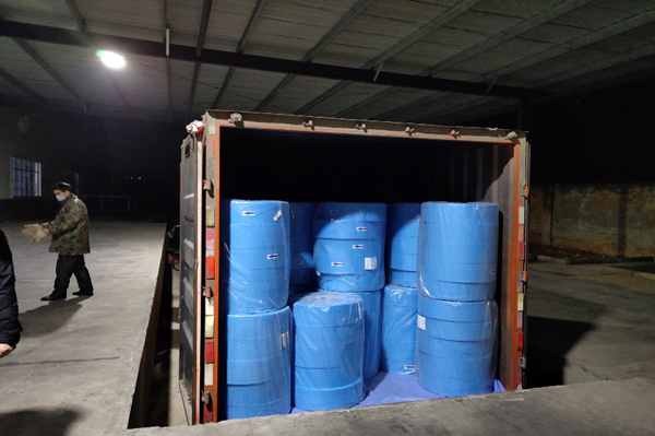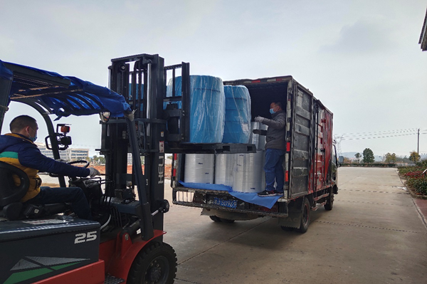 1月27日上午10時,接到口罩生產(chǎn)廠家的需求,湖南欣龍立即安排工作人員加班發(fā)貨,及時將生產(chǎn)口罩所需物資發(fā)往口罩加工廠家。