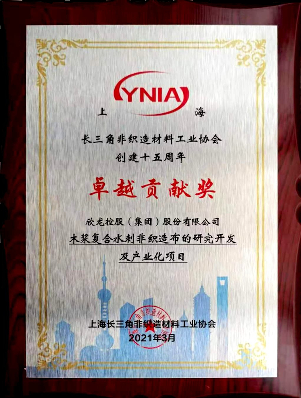 近日,上海長三角非織造材料工業(yè)協(xié)會創(chuàng)建十五周年慶?;顒釉谏虾B≈嘏e行。大會總結和表彰了在長三角非織造材料產(chǎn)業(yè)創(chuàng)新發(fā)展中作出突出貢獻的項目、企業(yè)和個人,我司“木漿復合水刺非織造布的研究開發(fā)及產(chǎn)業(yè)化項目”榮獲上海長三角非織造材料工業(yè)協(xié)會創(chuàng)建十五周年“卓越貢獻獎”。