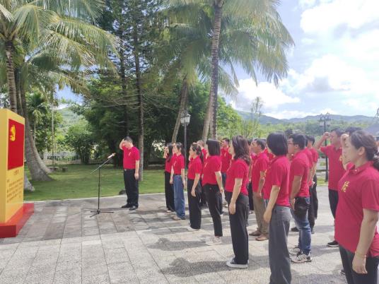 母瑞山是瓊崖革命的搖籃,也是瓊崖革命“二十三年紅旗不倒”的見證地。在母瑞山革命根據地紀念園廣場,黨員們一起緬懷瓊崖革命先驅馮白駒、王文明同志。大家面向鮮紅的黨旗,莊嚴肅立,重溫入黨誓詞,表達對黨的無限忠誠。