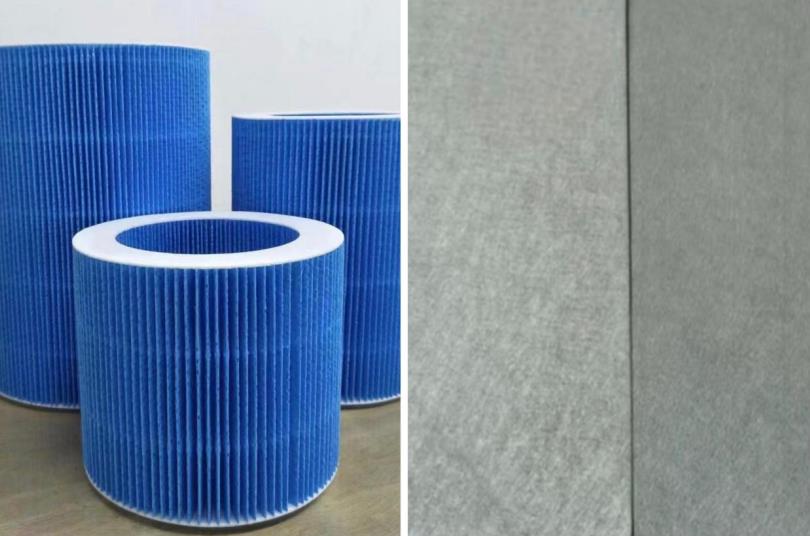 圖為:高效加濕水刺材料(左)、超薄高密度水刺仿生材料(右)