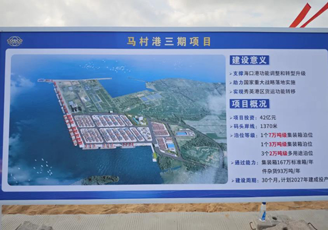 據(jù)悉,馬村港三期項(xiàng)目是國(guó)家重點(diǎn)項(xiàng)目,是自貿(mào)港港口規(guī)劃布局的重要組成。馬村港三期項(xiàng)目總投資約42億元,建成后將新增1個(gè)7萬(wàn)噸級(jí)、1個(gè)3萬(wàn)噸級(jí)集裝箱泊位和3個(gè)2萬(wàn)噸級(jí)多用途泊位,形成集裝箱167萬(wàn)標(biāo)準(zhǔn)箱、件雜貨93萬(wàn)噸的年通過(guò)能力,可順利承接秀英港區(qū)貨運(yùn)功能,強(qiáng)化馬村港區(qū)作為??诟劬C合性中心港區(qū)的核心地位,對(duì)進(jìn)一步優(yōu)化海南港口資源布局,全面提升海南港口群整體實(shí)力和區(qū)域競(jìng)爭(zhēng)力,更好服務(wù)于海南自由貿(mào)易港建設(shè)具有重要意義。