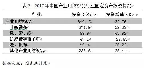 2018年我國產(chǎn)業(yè)用紡織品行業(yè)將會平穩(wěn)發(fā)展,生產(chǎn)和銷售的增速會略高于2017年的水平,出口繼續(xù)保持較高的增速,盈利能力會得到改善,固定資產(chǎn)投資的增速可能會有所回落。