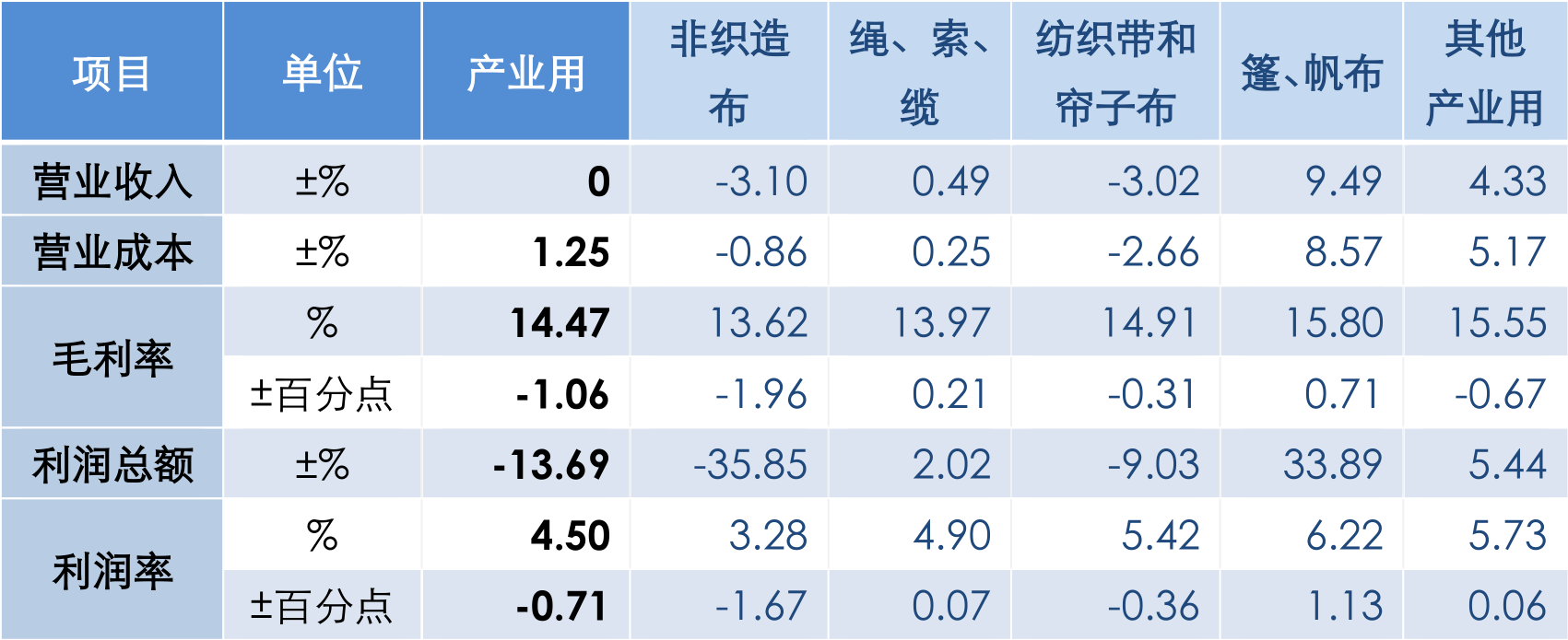 經(jīng)濟(jì)效益方面,1-8月產(chǎn)業(yè)用紡織品行業(yè)規(guī)模以上企業(yè)的營業(yè)收入已恢復(fù)至2021年同期水平,利潤總額同比下降13.7%,利潤率為4.5%,同比下降0.7個(gè)百分點(diǎn)。分領(lǐng)域看,1-8月非織造布規(guī)模以上企業(yè)的營業(yè)收入和利潤總額分別同比下降3.1%和35.9%,利潤率為3.3%,同比下降1.7個(gè)百分點(diǎn);繩、索、纜規(guī)模以上企業(yè)的營業(yè)收入和利潤總額分別同比增長0.5%和2.0%,利潤率為4.9%,同比增長0.1個(gè)百分點(diǎn);紡織帶、簾子布規(guī)模以上企業(yè)的營業(yè)收入和利潤總額分別同比下降3.0%和9.0%,利潤率為5.4%,同比下降0.4個(gè)百分點(diǎn);篷、帆布規(guī)模以上企業(yè)的營業(yè)收入和利潤總額分別同比增長9.5%和33.9%,6.2%的利潤率為行業(yè)最高水平;過濾、土工用紡織品所在的其他產(chǎn)業(yè)用紡織品規(guī)模以上企業(yè)的營業(yè)收入和利潤總額分別同比增長4.3%和5.4%,利潤率為5.7%,同比增長0.1個(gè)百分點(diǎn)。
