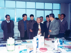 1996年2月14日到公司視察工作,并題詞“重視科學(xué)是技術(shù),發(fā)展無(wú)紡工藝”。